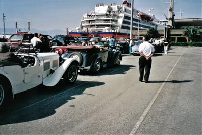 The El Capricho main entrance and waiting at the Santander Docks.