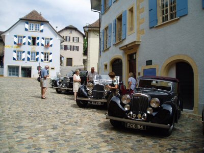 Cars parked and wine tasting at Montmollin Caves at Auvernier.