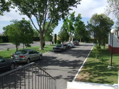 Three of the cars outside the Albacete Parador. Relaxing after the long journey!