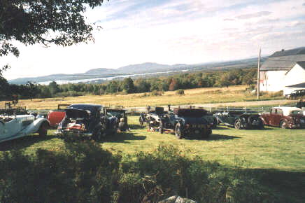 Once in Canada, everything was in French. In fact rather surprisingly the road signs had been in both languages on the US side for quite a few miles. The drive was quite pleasant, very scenic, but very bumpy. The last five miles was on dirt, although quite well graded and probably better than some of the paved roads. Vincent’s estate was spectacular and the view stunning. All the cars were parked in the orchard and made a very impressive display. His elderly mother was quite overcome, having been married to a British Officer and had longing memories of England in her youth. At the end of the afternoon, I introduced her to Jim, who is very much of the same generation. Vincent has an interesting collection of other British cars as well, including Humbers and Fords.