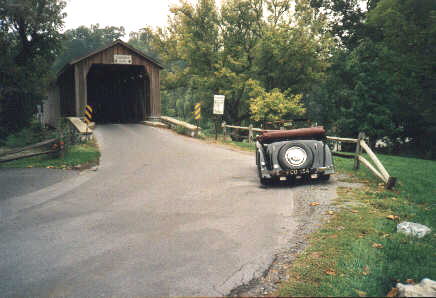 Sunday dawned very grey and cold. We were supposed to be on duty quite early for a photo shoot. A Californian film crew had flown over and wanted to spend the morning taking video of all the cars. We set off in a long convoy for several junctions on the Interstate, thus allowing the film crew to leap frog up and down the line. We then returned to the hotel. Sarah had spotted some antique stalls close to the hotel and we were about the last to leave. She bought some rather nice silver spoons. Not long after setting off, we again stopped for quite a while at another large antique place. Tim had been really champing at the bit earlier on, so we let them go of to catch up the others for more filming. Despite being very late in continuing, we still caught the others up queuing to be filmed going across one of the covered bridges. Our late departure had spared us all the waiting around.!!