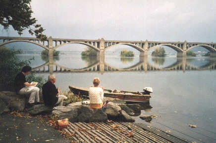 Friday 6th October 2000 and our final day of touring! We ignored the route plan completely. We were heading for Towson, MD, on the outskirts of Baltimore and the recommended roads all appeared to be major highways. The journey was to be only about 70 miles, so we decided to use minor cross-country roads. Our first port of call was the National Clock Museum at Columbia. This must be the largest collection of clocks, watches, etc in the world. It was the most incredible place, and the descriptions in the museum were in proper English, unlike so much of what you read in the USA. We then crossed the Susquehanna River and headed south, stopping at a small Bar for a drink and to get a picnic lunch. Our lunch spot was well off the road and right beside the river, with the very impressive bridge that we had crossed earlier acting as a backdrop to the wonderful view. The two cars looked terrific parked side by side on the slipway.