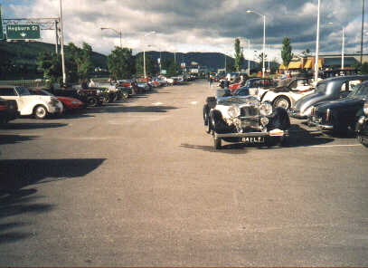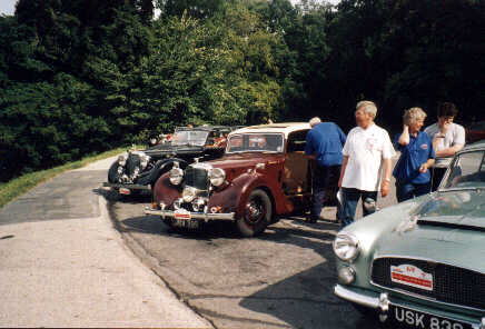 Sarah and I, in my 1949 TA14 Carbodies Drophead Coupé, travelled most of the time with another car owned by Jim Tatchell, an eighty-one year old friend of ours. His companion was his grandson Tim, nineteen. Thus, "the youngest" and "the oldest" on the trip were in the same car! This was a 1948 TA14 with special fixed head two door coupé body by Duncan. Jim was a member of the club in the early fifties and is a fascinating fellow. Last year, he visited very county in England, Scotland and Wales in his Alvis. He did almost 8,000 miles!!! I think that I'm doing well, covering almost 5,000 in a year. Since I introduced Sarah to him early this year, she has had a soft spot for him and thought we ought to look after him during the trip. I think she is now finding out just what a tough old chap he is! The advantage of travelling with another couple is that coffee/lunch stops and general sightseeing is so much more interesting. The disadvantage is that you can't always stop (for photos mainly) when you want to. The fascinating thing about the trip was that we very rarely saw any of the other cars during the day. You would sometimes see a few stopped for coffee or lunch, but it was only at the major tourist attractions that you would have a larger group. So, despite the large number of cars roaming around, it was very relaxed and pleasant.