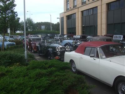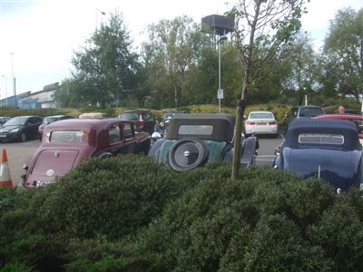 A drive of 136 miles, hood down all the way, to the Future Inn. We stopped for lunch just off the motorway (A48) at The Coach & Horses, a Beefeater Grill Restaurant and arrived at the Hotel at about 2.30pm. There were already quite a lot of Alvis cars there. The Hotel is large, with about 190 rooms. We had a very pleasant suite: large bedroom and large lounge with fridge, TV, sofa, chairs, etc.