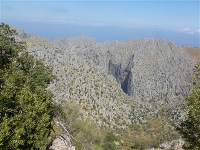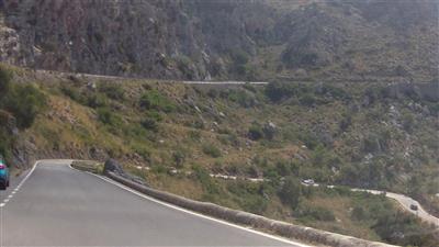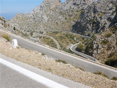 The suggested runs were to the very northern tip of the island at Cap de Formentor and on the west coast to Sa Calobra. Both have very spectacular roads and breathtaking scenery. I have done the Formentor trip twice, once in 1976 in a Fiat 500 with four up (very entertaining on the steep bits!) and once in 1991. On the second occasion, we also spent the day at the wonderful Playa de Formentor, a glorious golden sandy beach. This time we decided to do the drive to Sa Calobra. We took the road along the coast through Palma, past the Cathedral and towards Inca. We then drove north to Caimari to pick up the Ma10 towards Sa Calobra. The drive is stunning and the Ma2141 road to the coast is as tortuous as any Alpine route. The top of the Col dels Reis, 682 metres, gives wonderful views out to the coast. I did this drive last in 1991 and was totally unprepared for the incredible heaving mass of people that greeted us this time. Coachloads of tourists were being disgorged all the time we were there. Very fortunately, we were able to drive right down to the bay and into a disabled slot beside the huge self-service restaurant. The setting is magic, but the atmosphere has changed so much. This is a major major tourist attraction and driving is not the pleasure it was. We continued on to Soller and back to the hotel through the new tunnel.
