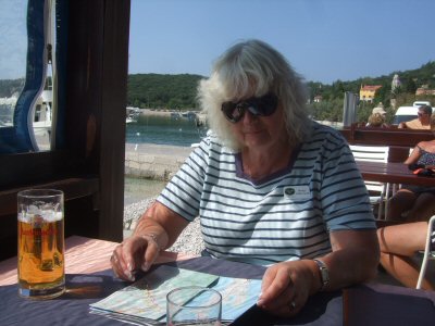 Our plan for the second day, Monday 15th, was to take the ferry across to the island of Cres. The port of Valbiska was only about 15 minutes drive and the crossing another 30 minutes. On arrival, we headed first of all into Cres Town, explored along the seafront, but only stopped briefly. We had intended then to drive down to the southern end of the Island. However, after consulting the map, I decide that an excursion to Martinscica on the west coast might be more interesting. We found this to be a delightful sleepy little fishing village with wonderful views out over the sea and several good restaurants along the front. We treated ourselves to a light lunch and relaxed, enjoying the feeling of really being on holiday at last.