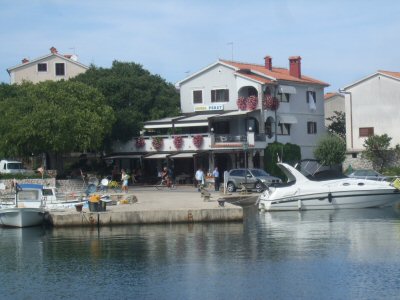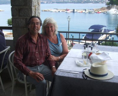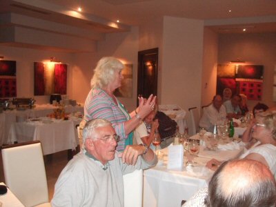 Wednesday 15th dawned bright and sunny and most of the group had set off very early on a full day trip around the islands. I’m not very good on boats since having had inner ear problems and we decided to explore closer to home. We walked along the coast path running west from the hotel’s beach, eventually reaching the charming little fishing village of Porat. There are various restaurants arranged around the sheltered harbour and we had a wonderfully relaxing lunch on the first floor terrace of the one on the west side. This was followed by a leisurely stroll back to the hotel and brief spell beside the pool. The themed dinner this evening was Italian. An additional twist was that each table was requested to provide some entertainment for the group. Marilyn’s description of her job as “a subterranean travel agent” certainly had everyone guessing!