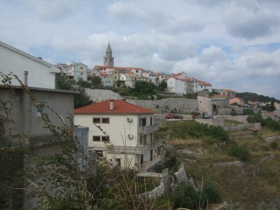 There was still quite a lot of the island that we hadn’t yet explored, so Thursday was to be Vrbnik. The weather had started to change and it wasn’t quite so sunny. However, it was still very pleasant with the hood down and we had an enjoyable drive into Vrbnik. Once again, we found this extremely touristy and busy. We explored the newer part of the town down to the cliff edge, and then walked into the older, pedestrian only, part. This was most intriguing, as we managed to get lost! It seemed at one stage that every little passage we tried came to a dead end. Eventually, we ended up in allotments by the cliff edge and were able to see the old church up at the top of the old town. I knew that we should be able to find our way out if we could get back to the church! Well, thankfully, we did find our way out to the edge of the old town. By now, we were rather hot and tired and a sit down for refreshments was most welcome.
