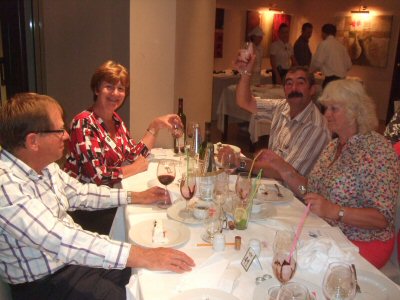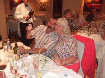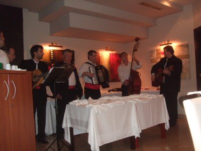 The weather was definitely not suitable for open topped motoring and we decided to have another relaxing day prior to the long journey home. Marilyn spent some time in the reception area keeping in contact with the world on her laptop. I checked out the car. It wasn’t long before it was time to prepare for the final Gala Dinner. The rain was a real challenge because it is impossible to get to the bar or restaurant without going out into the rain: an amazing oversight by the hotel’s designer. The dinner was very successful, including a live Croatian folk group to serenade us. Our table certainly consumed rather a lot of wine! It was a wonderful conclusion to a most enjoyable holiday. The management had even made a special Jaguar cake which was served at the end of the dinner.