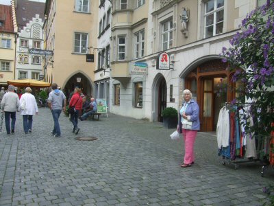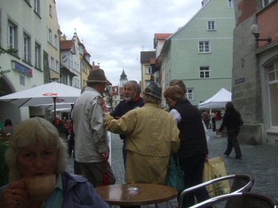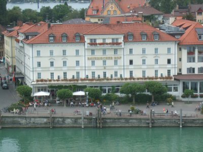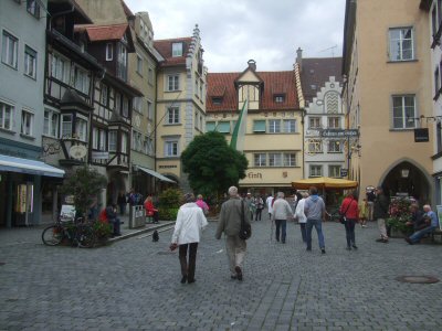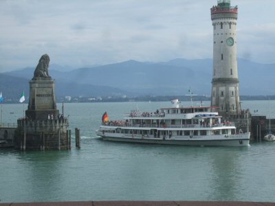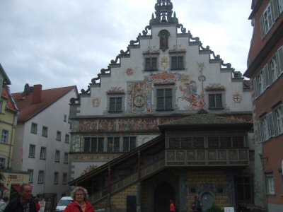 A real "rest day" and an improvement in the weather. We explored most of the Island part of Lindau and joined some of the group for coffee. Lunch was again at the Hotel's excellent terrace bar. The view over the harbour and the lake is well worth any additional cost. Frequent arrivals of the ferry boats meant that there was lots to watch. The view from our room at the front of the hotel included the old lighthouse at the entrance to the harbour. I had decided that this must be climbed! After a suitable interval from lunch we set off towards the tower. The climb was much more arduous than I had expected (Marilyn stayed at the bottom), but well well worth the effort. The view from the top was spectacular. We had dinner at an excellent restaurant in the main street and were joined by David and Ann Render.