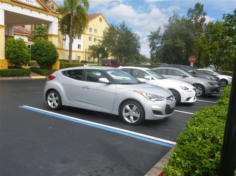 Our weird little hire car, a Hyundai Veloster 1.6 Auto. One door on this side.