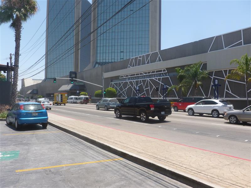 Boulevard Agua Caliente, a one way street. Behind the hotel is a very