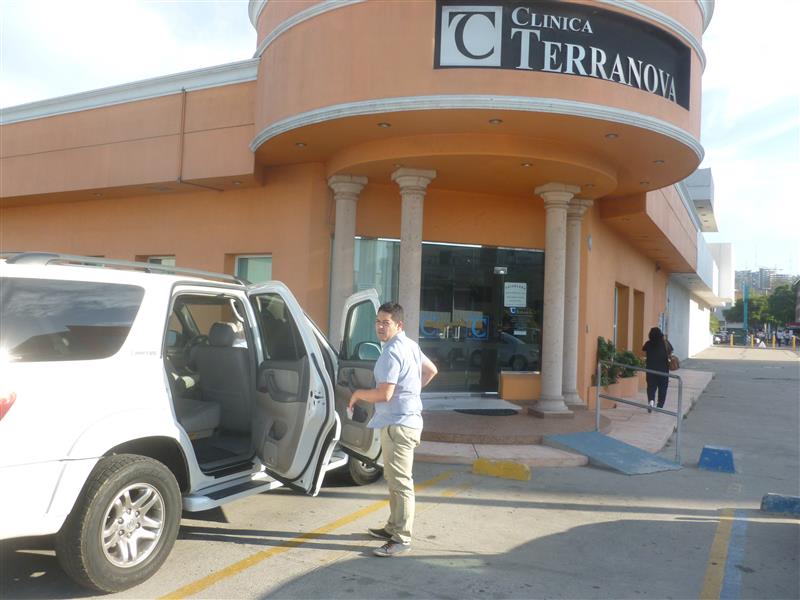 With our driver at the Clinica Terranova, where the stem cell procedure was