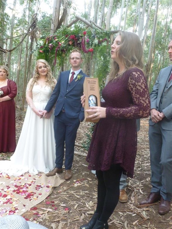 wedding was held in the forest at the Silver Sixpence and a Buggy was provided to get Marilyn and Maritza's grandmother to the venue. The wedding itself was "alternative" with
